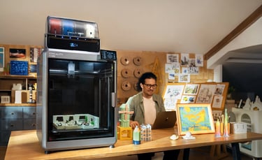 Equipped with the APUS all-metal direct drive extruder and a tri-metal integrated heatbreak nozzle capable of reaching 350°C, the K2 Plus supports a wide range of filaments, including PLA, ABS, PETG, and nylon. An actively heated chamber maintains temperatures up to 60°C, significantly reducing warping and improving print consistency, particularly with engineering-grade materials.