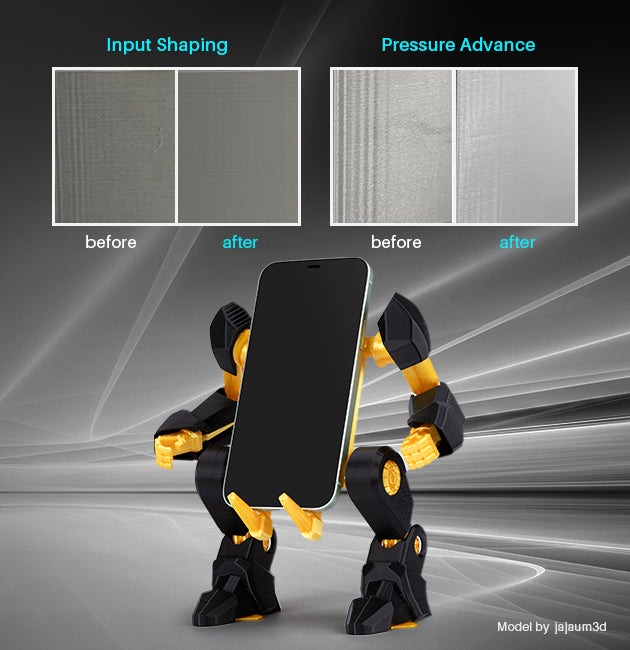 In addition, it supports input shaping, which helps eliminate artifacts and resonances on the model surface, and pressure advance, which helps predict nozzle pressure for more accurate and consistent extrusion and less filament ooze and blobbing.