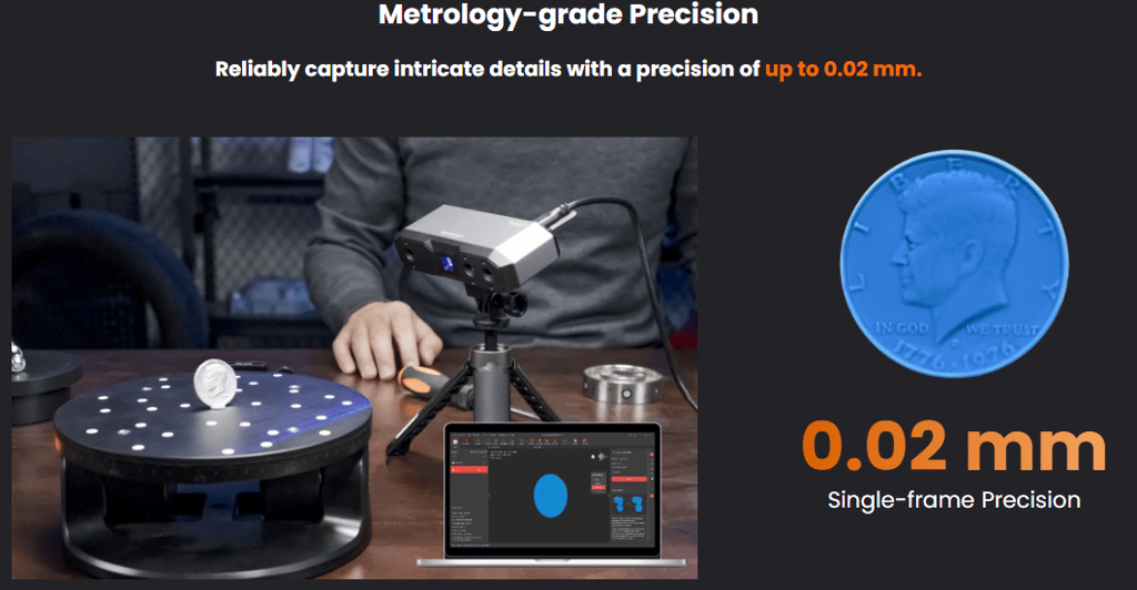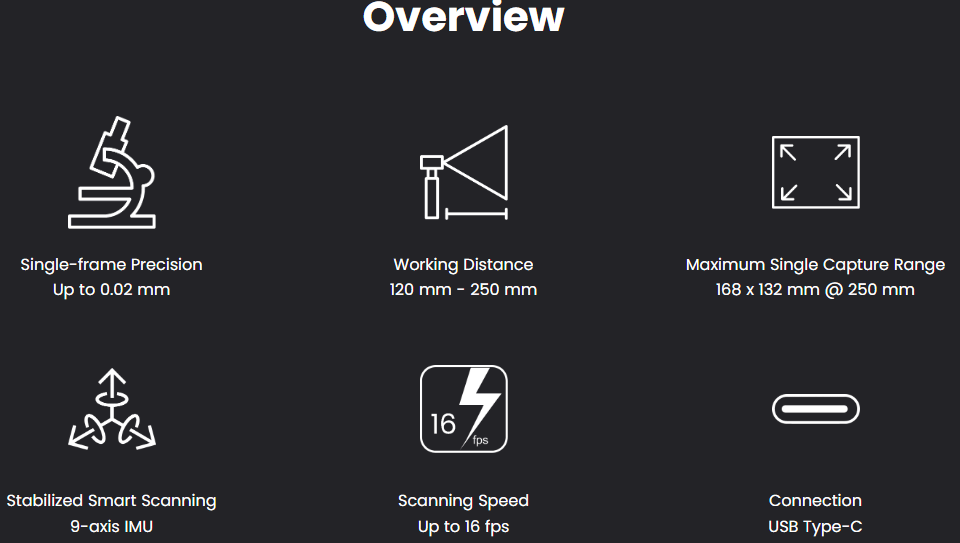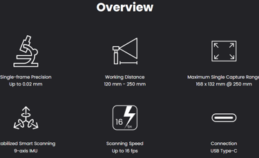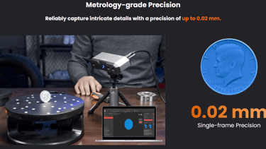 Capture the tiniest detail with the Revopoint MINI 2 3D scanner, the latest addition to the MINI series. Its powerful blue light metrological precision, upgraded hardware, and versatile accessories are ready to streamline 3D modeling for industrial inspection, customized healthcare, jewelry design, game modeling, and digitizing historical relics.